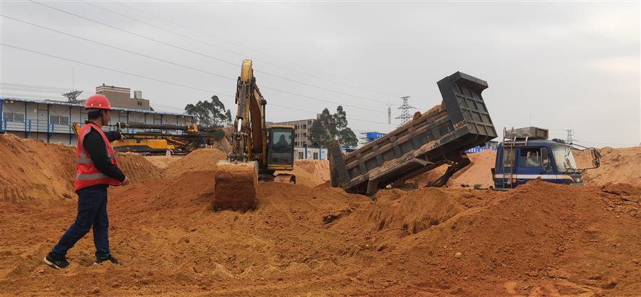 項目部現(xiàn)在已吹響“決戰(zhàn)三十天,沖刺總目標(biāo)”的號角,各項搶工工作正全面鋪開。目前,安全文明臨時設(shè)施已基本施工完畢,現(xiàn)場正緊鑼密鼓地進(jìn)行主體處障礙山體移除及基坑開挖等工作。