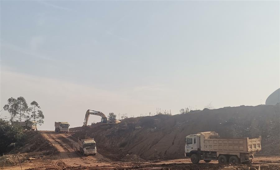 生活垃圾焚燒處理項目項目管理人員在放線測量