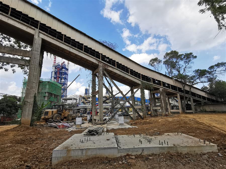 251砂巖長皮帶機輸送廊是魚峰水泥廠唯一一條進砂巖破碎料的輸送鏈,是廠內生產原料的臍帶。本次接駁任務,業主要求在七天時間內完成拆除重建工作,是歷次接駁工作中工期最緊、任務最重的一次接駁工作,各項專業工作必須需銜接緊密,環環相扣。同時,需拆除的八跨斜廊道均為預制梁板結構,高度大,拆除環境復雜,廊道下方有已完工的設備基礎、正在運行的皮帶機輸送廊及高壓電纜溝需要進行保護,施工風險高、難度大。