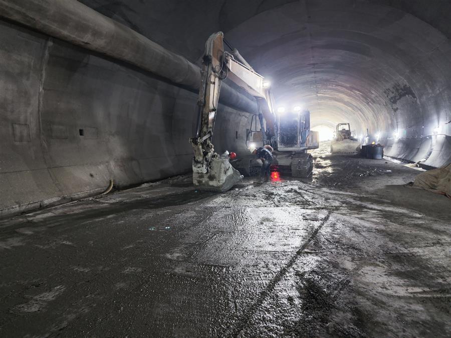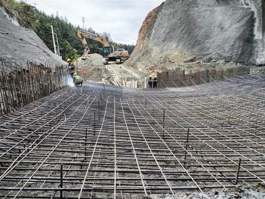 在施工現(xiàn)場,機(jī)器轟鳴,挖掘機(jī)正在對隧道明洞部分的土方進(jìn)行開挖,出渣車有序作業(yè)外運(yùn)渣土;工人們正有條不紊地焊接、搭建地連墻鋼筋籠;在隧道深處,一臺挖掘機(jī)在操作人員的操控下,正揮動(dòng)著“手臂”,配合著工人在對隧道路面做清理。“為加快項(xiàng)目施工進(jìn)度,我們采取人員倒班、設(shè)備不停,白天晚上不間斷施工。”項(xiàng)目經(jīng)理介紹說,目前隧道工程已全面貫通,爭取在春節(jié)前完成仰拱和墻供二襯砼澆筑。