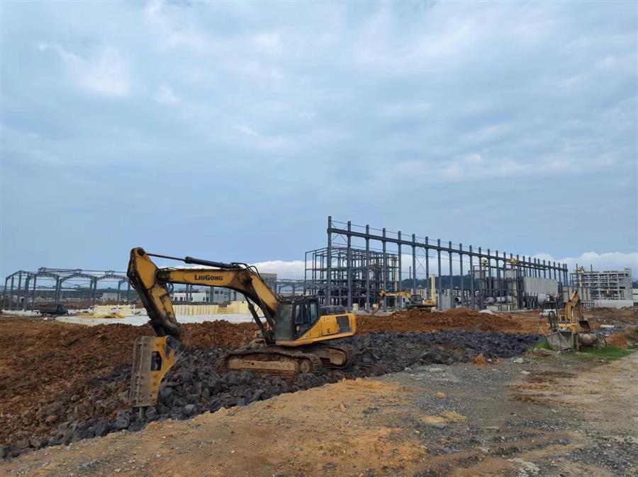 羅城硅晶新材料研發開發制造一體化項目(一期)施工現場,近100人的施工人員在多個工作面同時開展施工,施工現場機聲隆隆,項目管理團隊與現場施工人員節日不放假、不打烊,按照施工進度計劃,全員堅守崗位,齊心協力搶抓施工黃金期,加快項目建設進度。該項目是集辦公生活生產一體化的產業園,總建筑面積約6萬平方米。項目現處于鋼結構施工、設備安裝階段。