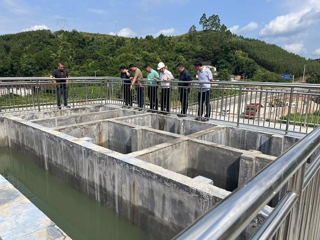成榮勝一行仔細檢查了項目管道、泵站、機電等設施是否平穩運行。隨著取水泵站機組的啟動,水源源不斷流入絮凝沉淀池、濾池、清水池,最終通過泵房輸送出去,試水工作取得了圓滿成功。