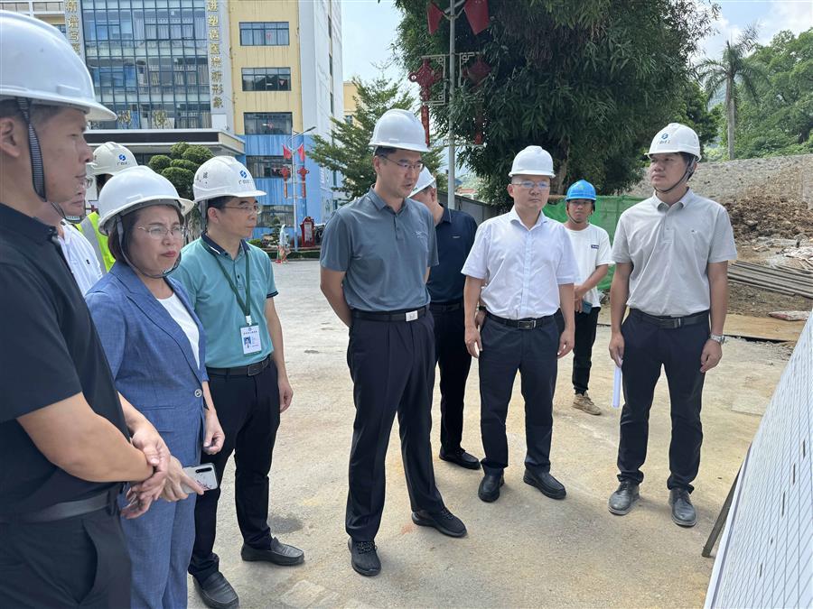 7月10日,憑祥市委書記武曉輝到冶建公司第五分公司承建的憑祥市人民醫院內科綜合樓項目調研指導工作。憑祥市常務副市長黃榮榮、副市長覃彩楣參加。