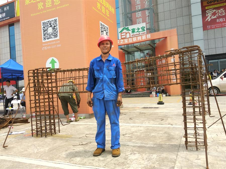 8月31日,在柳州家居建材博覽中心室外廣場上,一群頭戴安全,身著工裝的農民工在各自忙碌著,不時傳來“叮叮?!变摻钆鲎猜?、“嘩嘩嘩”刨木聲、“咚咚咚”敲磚聲……伴隨著一片熱鬧的聲響,柳州市第四屆農民工技能大賽暨柳州市第三屆農民工家庭服務業大賽火熱舉行。