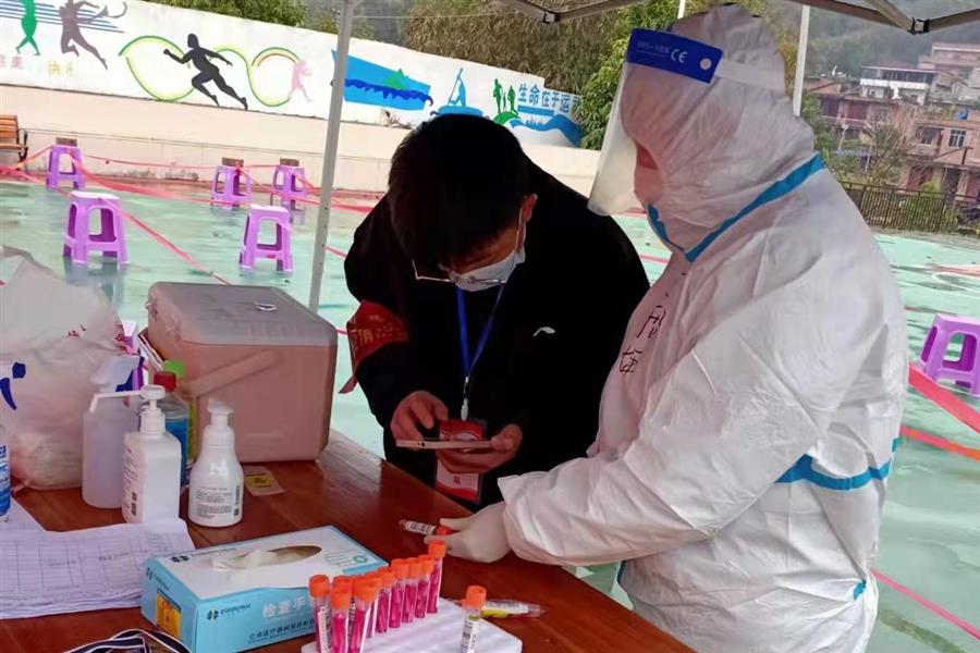 2月7日,阮斌在百色市田東縣印茶鎮(zhèn)那板村六內屯青年志愿者隊參加志愿者工作。他每天除了協(xié)助醫(yī)務人員進行核酸檢測,還要與其他志愿者在村口站崗,仔細檢查每一位村民的兩碼并測量體溫。遇到不配合工作的老人,他還會耐心解釋當前疫情防控政策,勸說他們不要離鄉(xiāng)走動,配合防疫工作人員做好疫情防控工作。不站崗時,阮斌會和其他青年志愿者一起上門宣傳疫情防護知識,幫助村民做核酸檢測前的信息錄入。有些老人不會使用手機,阮斌便耐心將操作流程演示給老人看,再讓老人自行操作一次,遇到老人忘記操作的步驟時,阮斌會一次又一次地演示,直到老人可以記住全部操作流程。